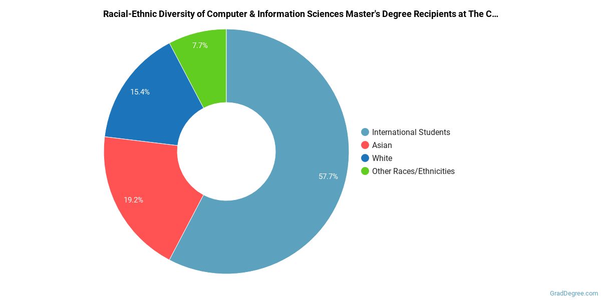 In the computer and information sciences master's program at this school, racial-ethnic minorities make up 23% of degree recipients. That is 2% better than the national average.*