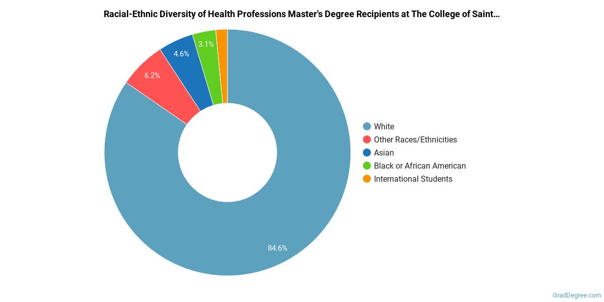 Of the students who received a health professions master's degree from Saint Rose, 85% were white. This is above average for this degree on the natiowide level.