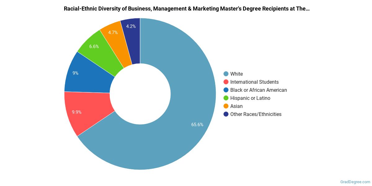 Of the students who received a business, management and marketing master's degree from UWF, 66% were white. This is above average for this degree on the natiowide level.
