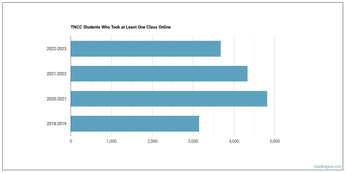 The following chart shows how the online learning population at TNCC has changed over the last few years.
