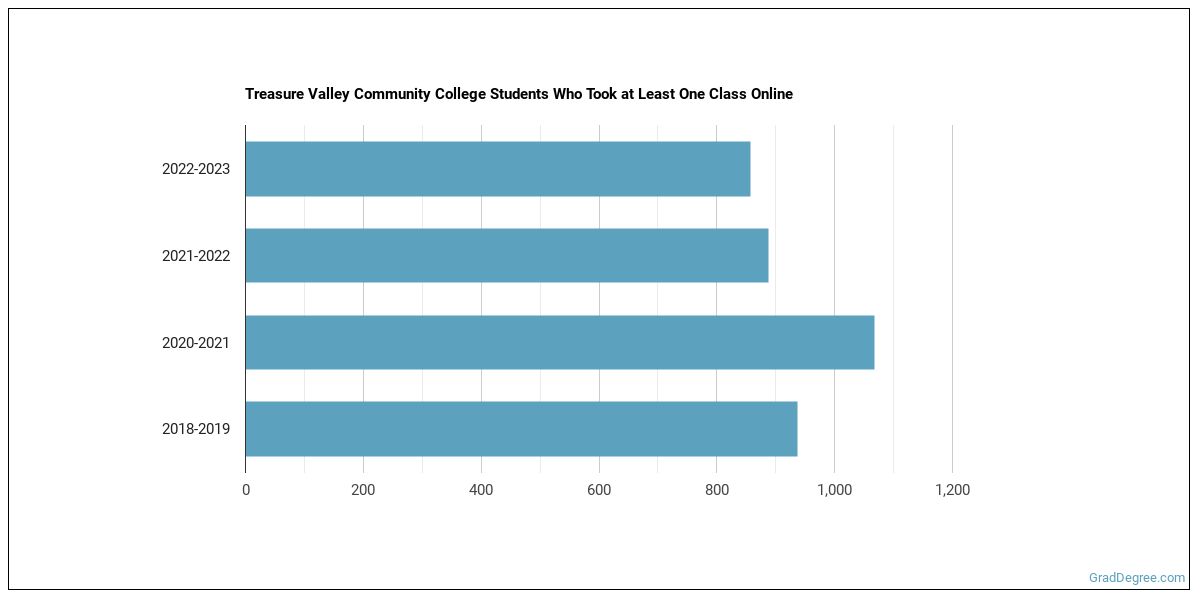 The following chart shows how the online learning population at Treasure Valley Community College has changed over the last few years.