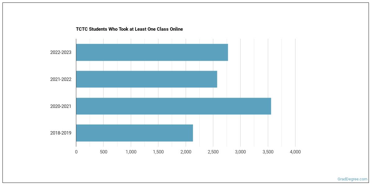 The following chart shows how the online learning population at TCTC has changed over the last few years.