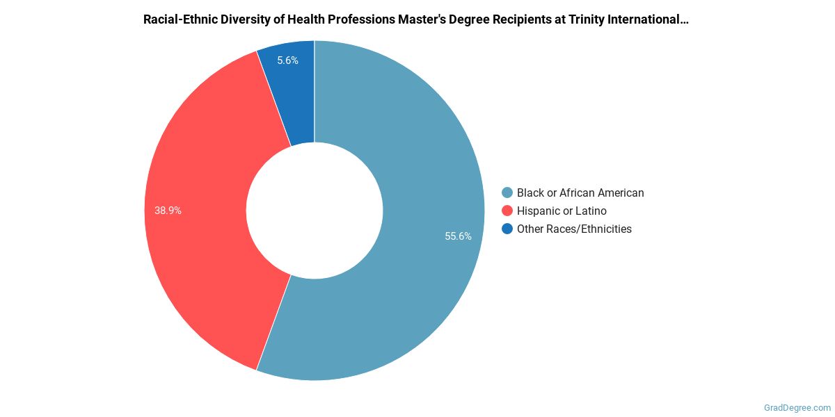 The following table and chart show the race/ethnicity for students who recently graduated from Trinity International University - Florida with a master's in health professions.
