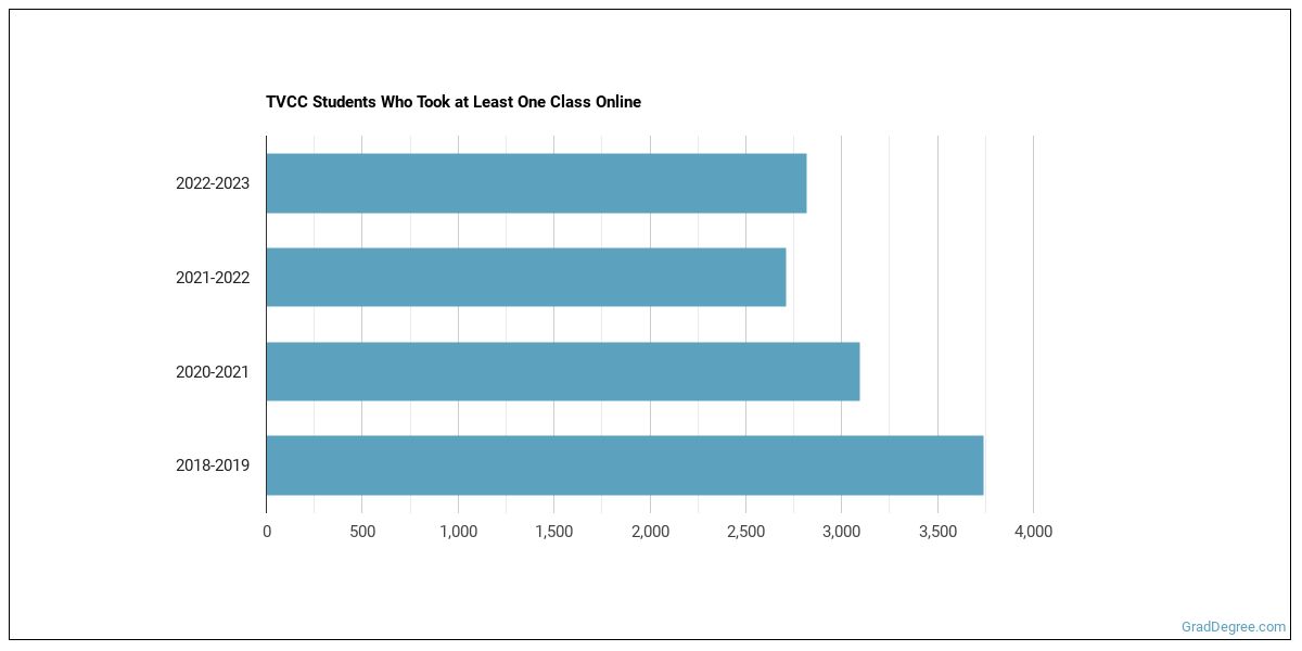 The following chart shows how the online learning population at TVCC has changed over the last few years.