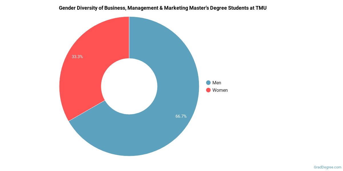 Of the students who received a business, management and marketing master's degree from TMU, 92% were white. This is above average for this degree on the natiowide level.