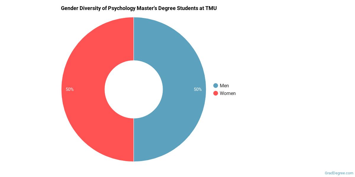 Of the students who received a psychology master's degree from TMU, 100% were white. This is above average for this degree on the natiowide level.