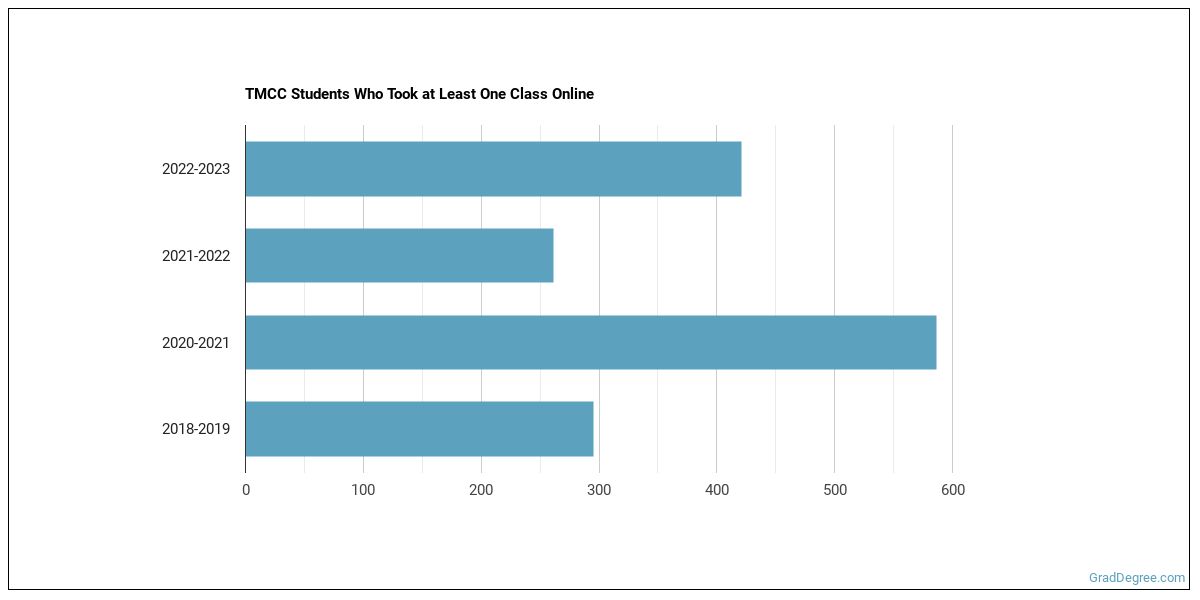 The following chart shows how the online learning population at TMCC has changed over the last few years.