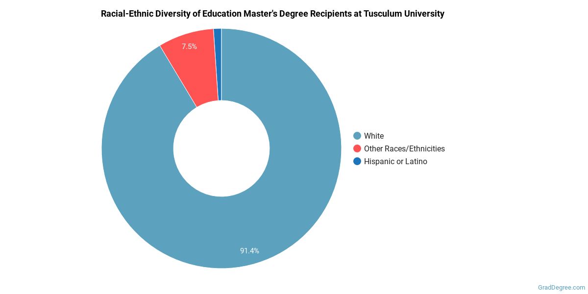 Of the students who received a education master's degree from Tusculum, 91% were white. This is above average for this degree on the natiowide level.
