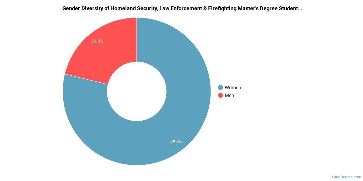In the homeland security, law enforcement and firefighting master's program at this school, racial-ethnic minorities make up 100% of degree recipients. That is 60% better than the national average.*