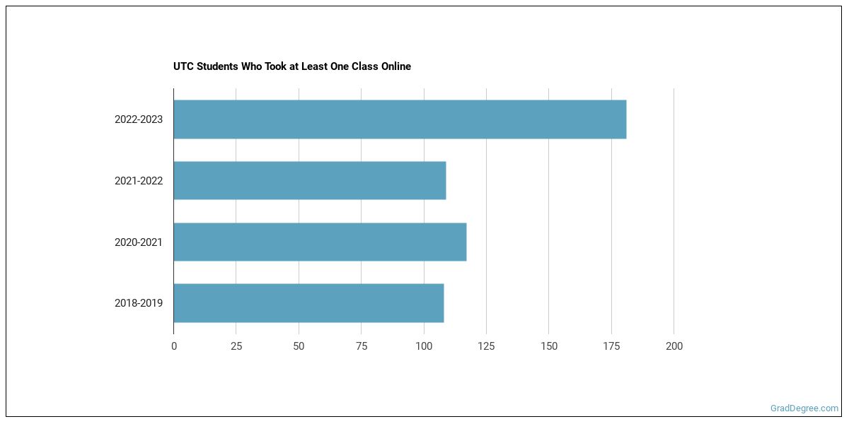The following chart shows how the online learning population at UTC has changed over the last few years.
