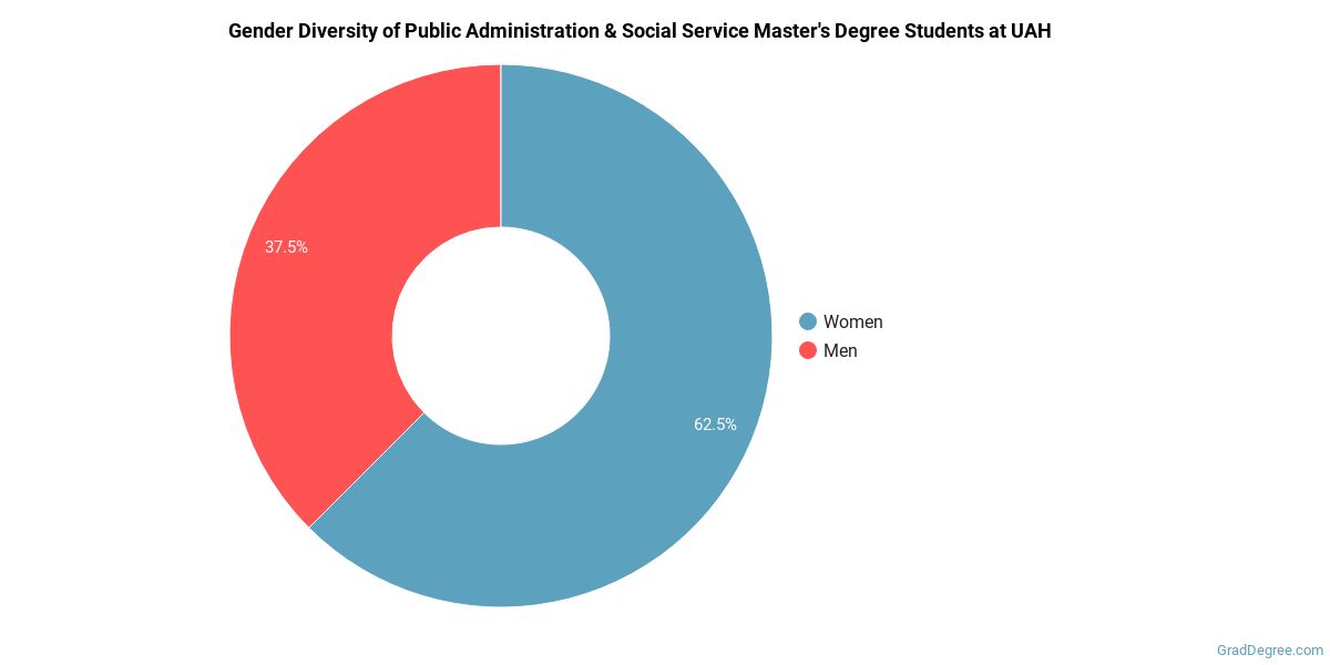 If you are interested in studying public administration and social service, you may want to check out the program at University of Alabama in Huntsville. The following information will help you decide if it is a good fit for you.UAH is located in Huntsville, Alabama and approximately 9,999 students attend the school each year. During the 2020-2021 academic year, 8 students received their master's degree in public administration and social service.