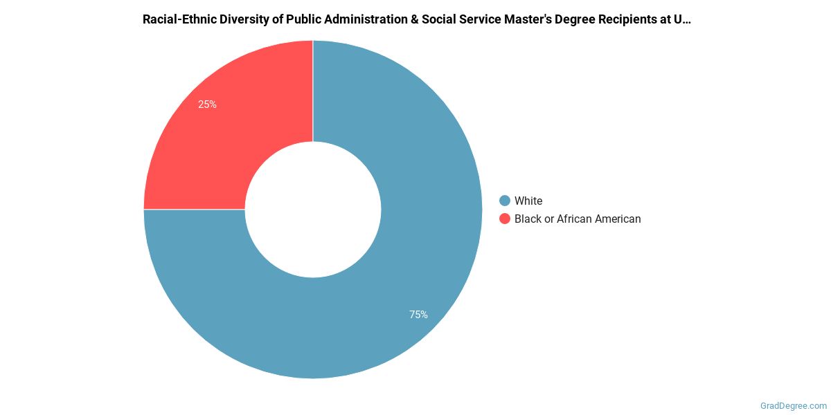Of the students who received a public administration and social service master's degree from UAH, 75% were white. This is above average for this degree on the natiowide level.