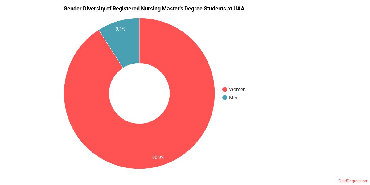Of the students who received a registered nursing master's degree from UAA, 86% were white. This is above average for this degree on the natiowide level.