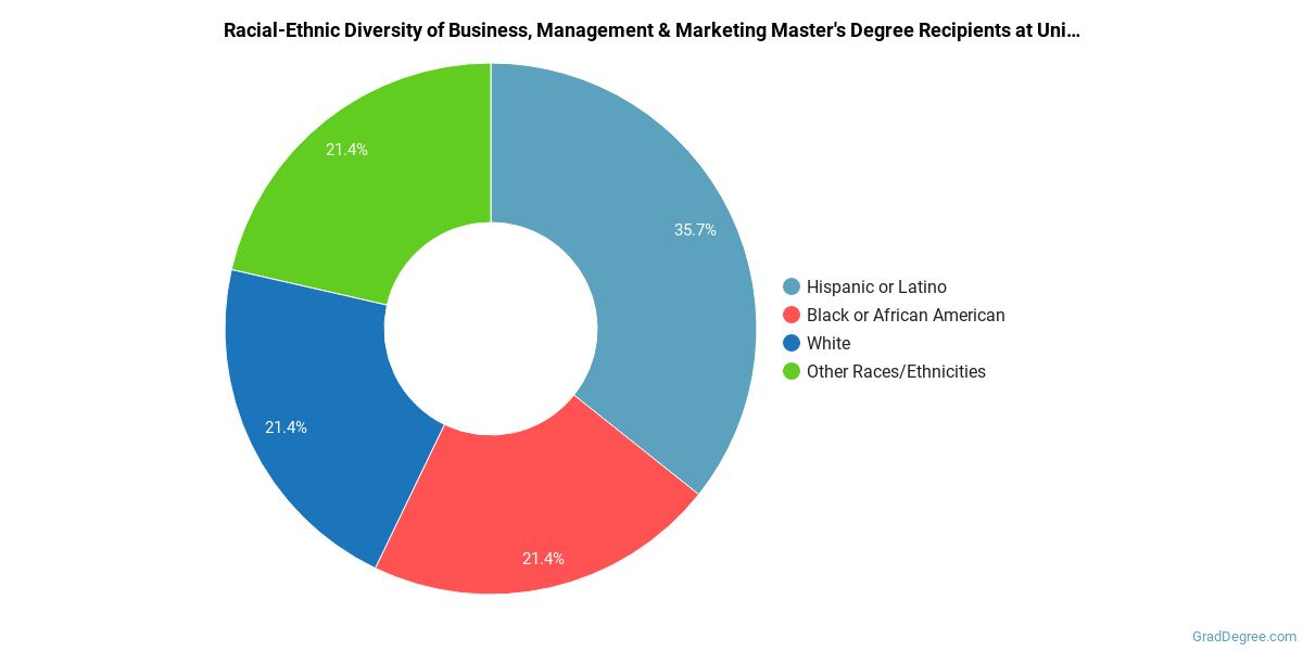 In the business, management and marketing master's program at this school, racial-ethnic minorities make up 79% of degree recipients. That is 47% better than the national average.*