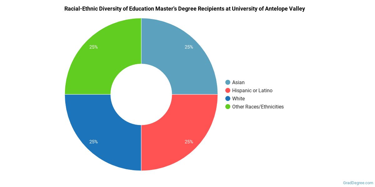 The following table and chart show the race/ethnicity for students who recently graduated from University of Antelope Valley with a master's in education.