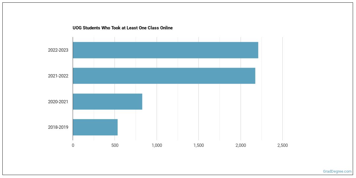 The following chart shows how the online learning population at UOG has changed over the last few years.
