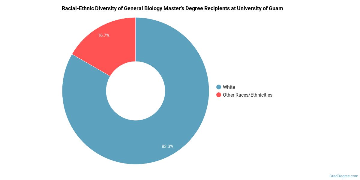 Of the students who received a biology master's degree from UOG, 83% were white. This is above average for this degree on the natiowide level.