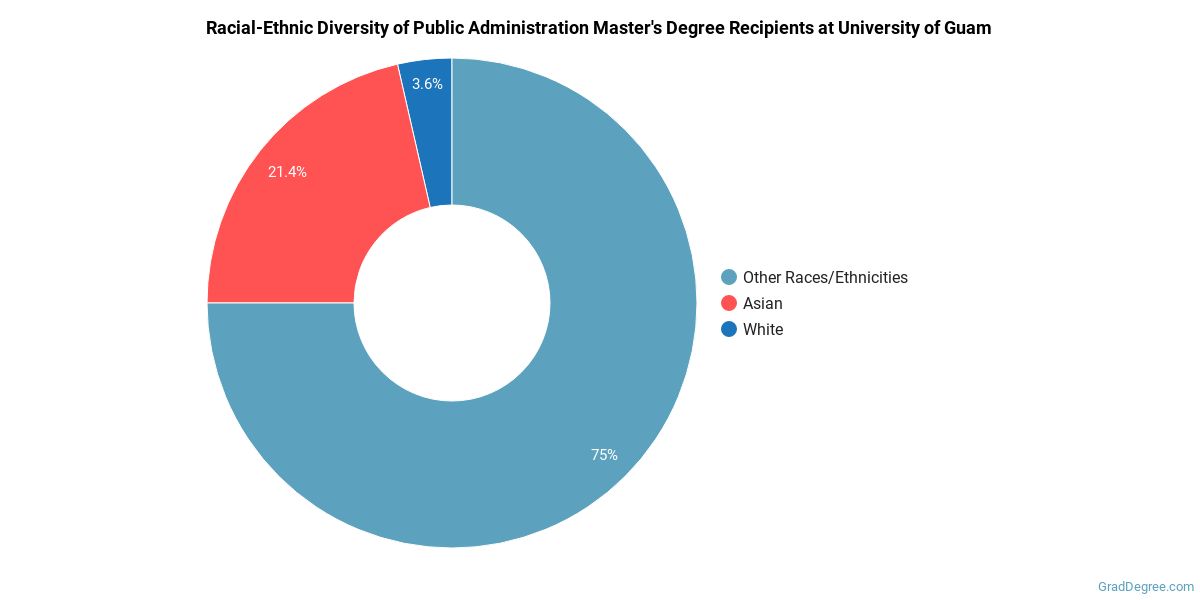 The following table and chart show the race/ethnicity for students who recently graduated from University of Guam with a master's in public admin.