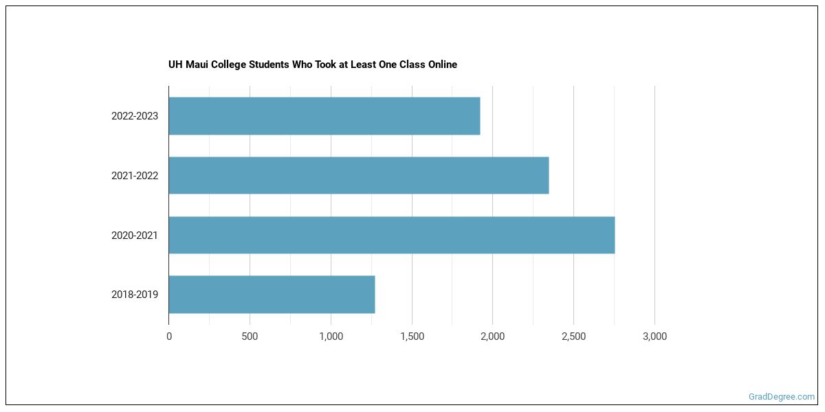 The following chart shows how the online learning population at UH Maui College has changed over the last few years.