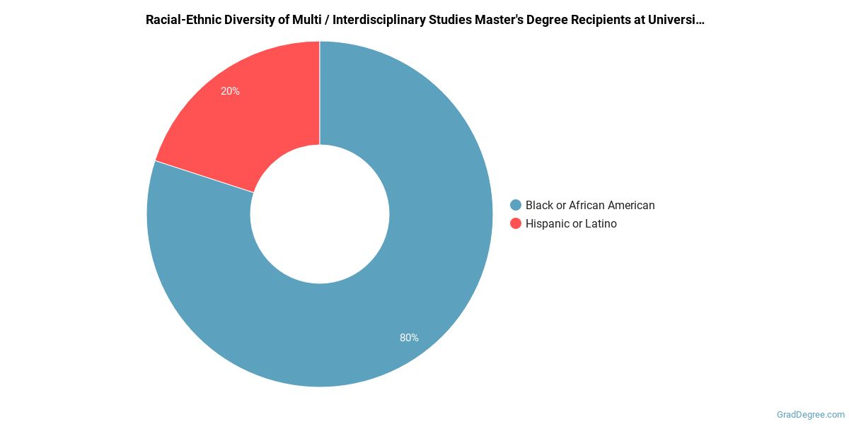 In the multi / interdisciplinary studies master's program at this school, racial-ethnic minorities make up 100% of degree recipients. That is 72% better than the national average.*