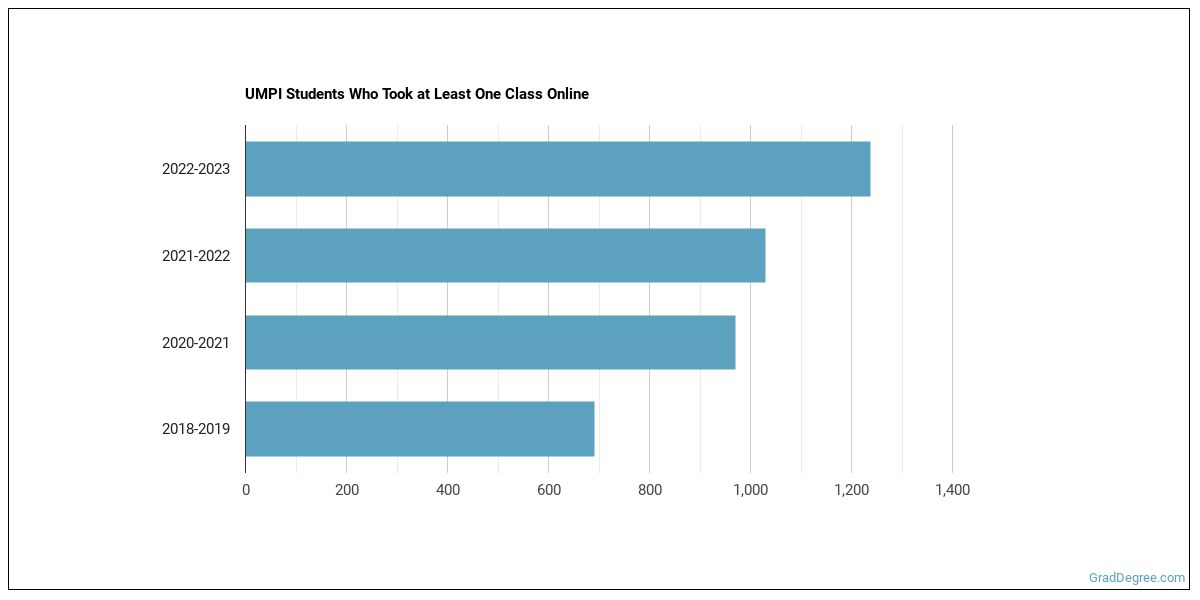 The following chart shows how the online learning population at UMPI has changed over the last few years.