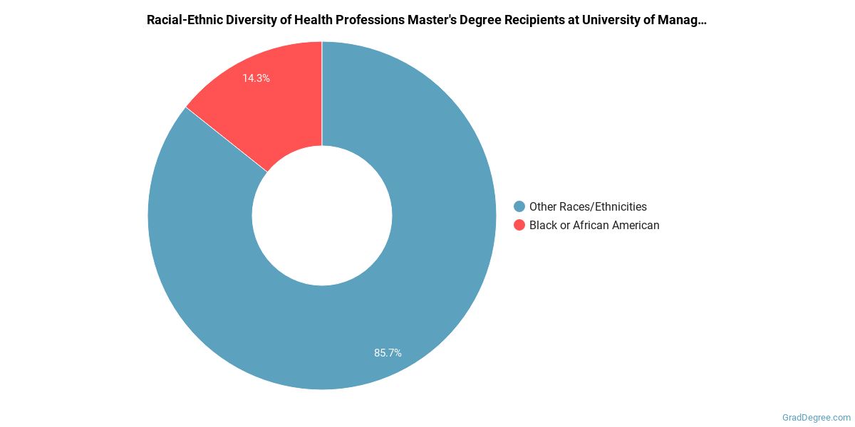 The following table and chart show the race/ethnicity for students who recently graduated from University of Management and Technology with a master's in health professions.