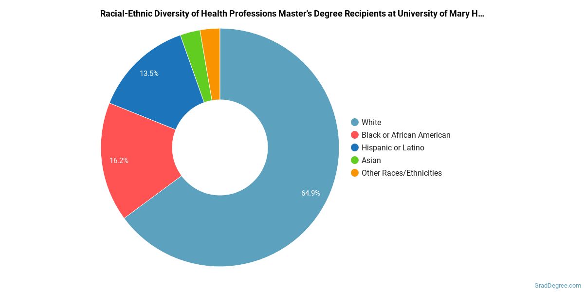 Of the students who received a health professions master's degree from UMHB, 65% were white. This is above average for this degree on the natiowide level.