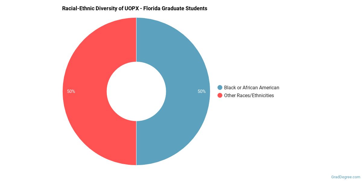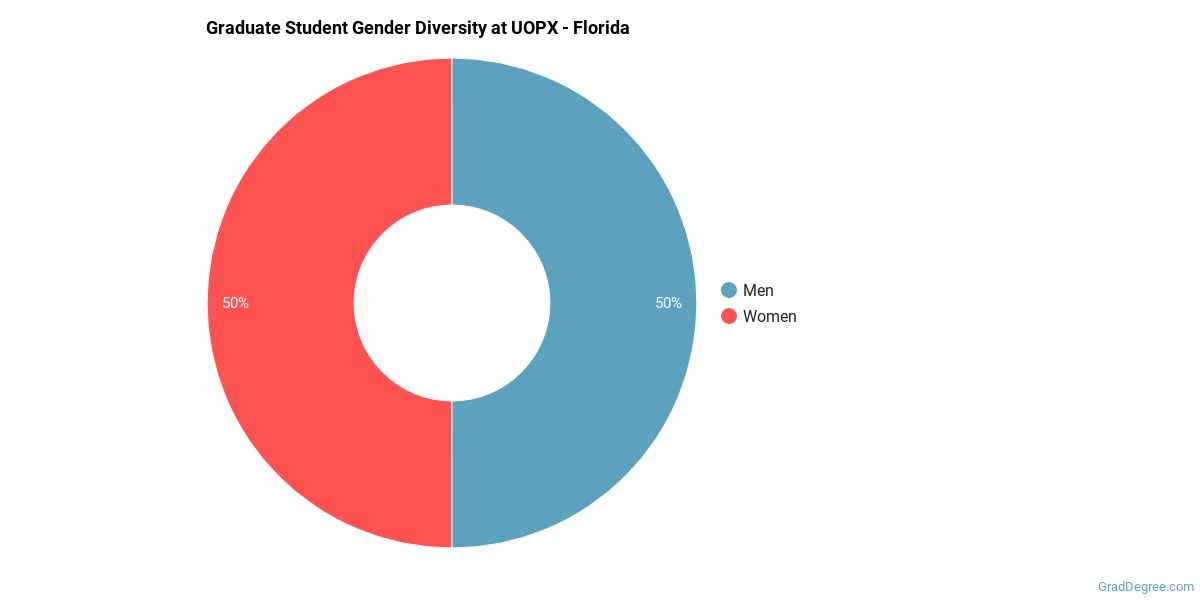 Of the 2 graduate students at UOPX - Florida, 50% are male and 50% are female.