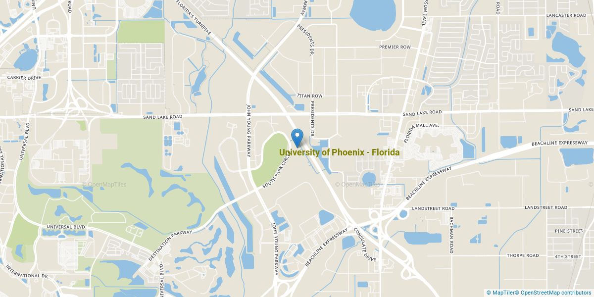 Located in Orlando, Florida, University of Phoenix - Florida is a private for-profit institution. The suburban atmosphere of Orlando makes it a great place for students who want the amenities of city life without actually living in the middle of a constant hustle and bustle.