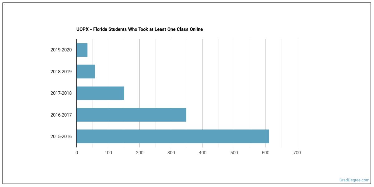 The following chart shows how the online learning population at UOPX - Florida has changed over the last few years.