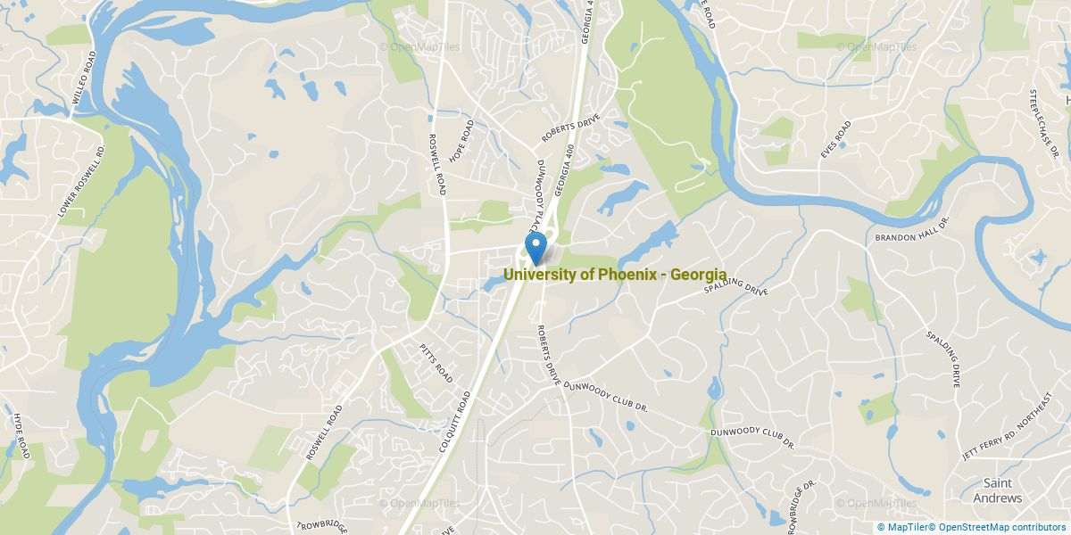 University of Phoenix - Georgia is a private for-profit institution situated in Sandy Springs, Georgia. Sandy Springs is a great location for students who prefer city over country life.