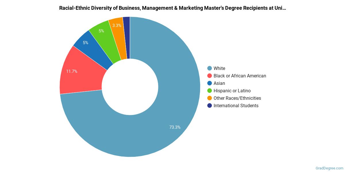 Of the students who received a business, management and marketing master's degree from University of St. Francis Fort Wayne, 73% were white. This is above average for this degree on the natiowide level.
