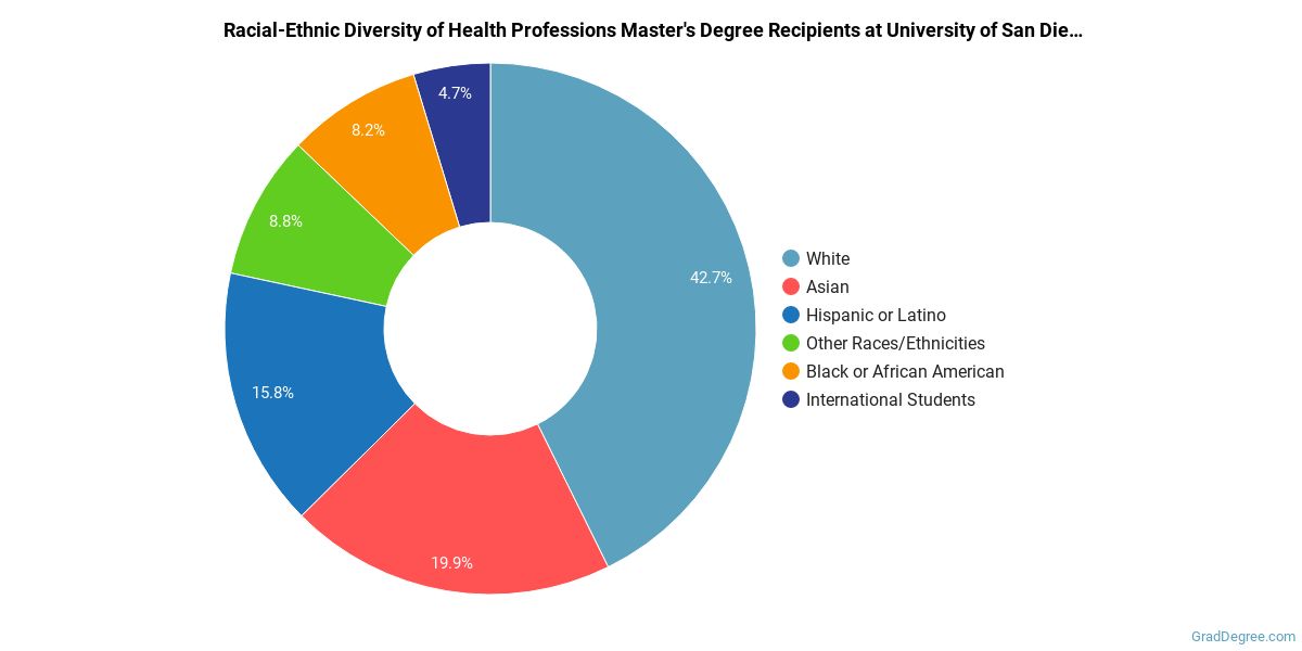 The following table and chart show the race/ethnicity for students who recently graduated from University of San Diego with a master's in health professions.