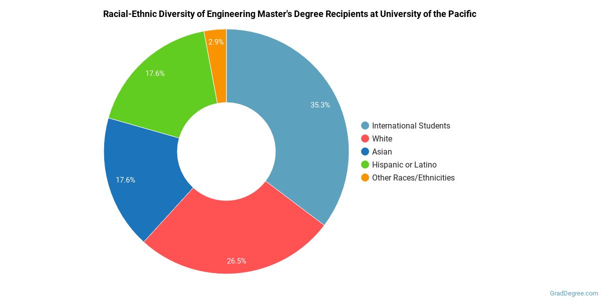 The following table and chart show the race/ethnicity for students who recently graduated from University of the Pacific with a master's in engineering.