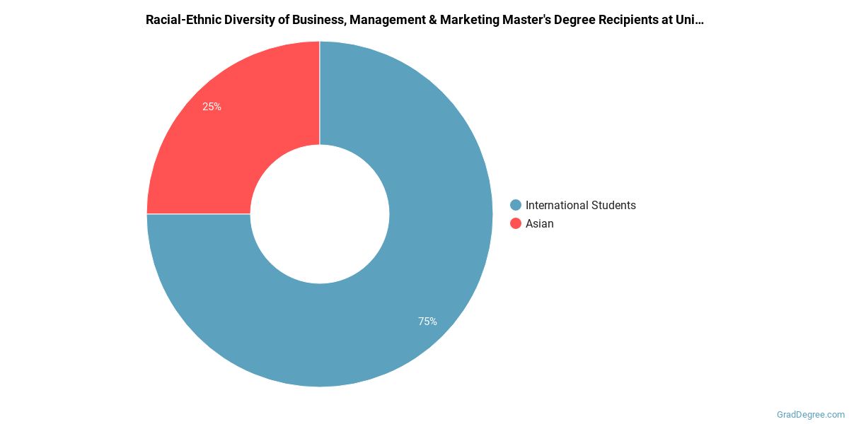 The following table and chart show the race/ethnicity for students who recently graduated from University of the West with a master's in business, management and marketing.