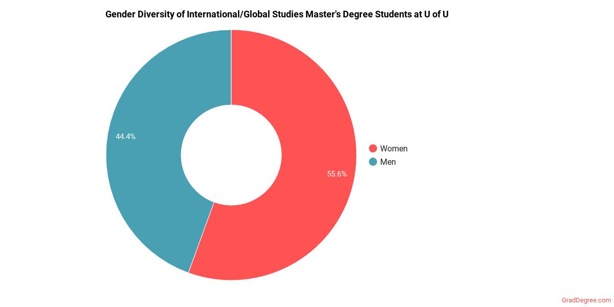 Of the students who received a global studies master's degree from U of U, 75% were white. This is above average for this degree on the natiowide level.