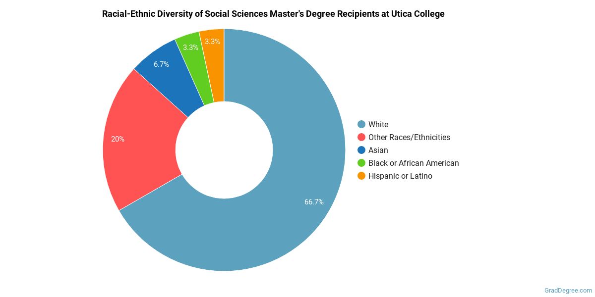 Of the students who received a social sciences master's degree from Utica College, 67% were white. This is above average for this degree on the natiowide level.