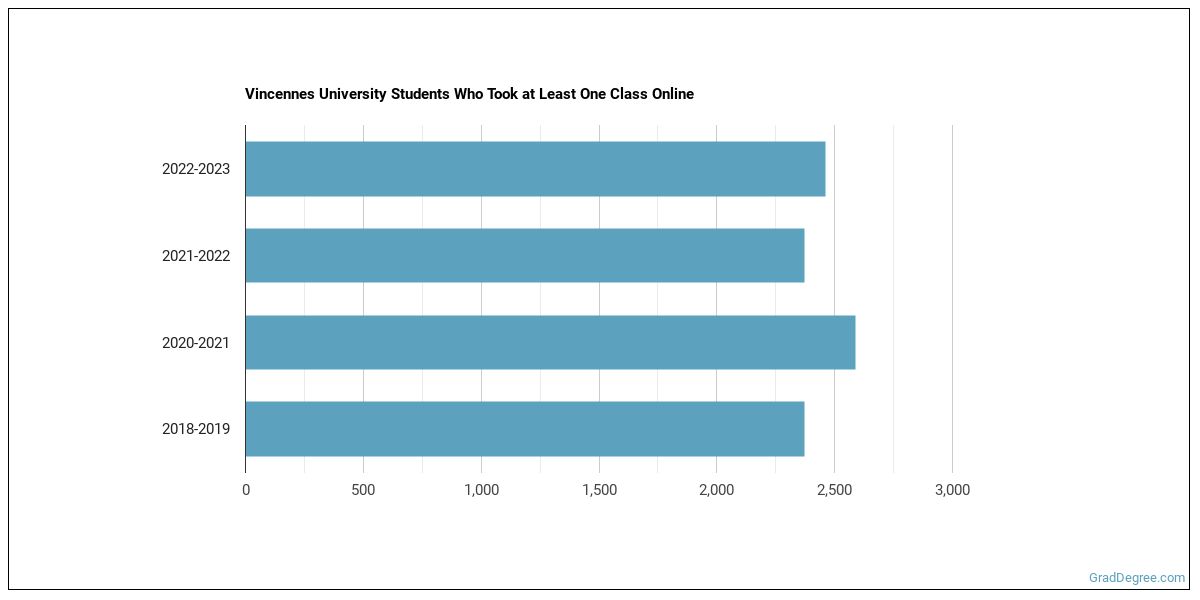 The following chart shows how the online learning population at Vincennes University has changed over the last few years.