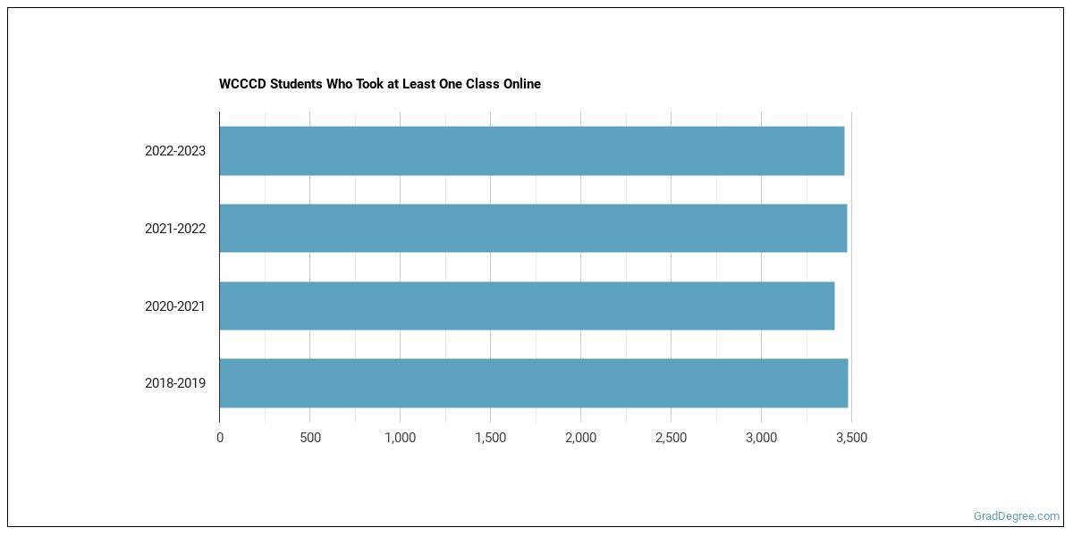 The following chart shows how the online learning population at WCCCD has changed over the last few years.