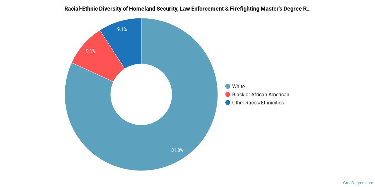 The following table and chart show the race/ethnicity for students who recently graduated from Webber International University with a master's in homeland security, law enforcement and firefighting.
