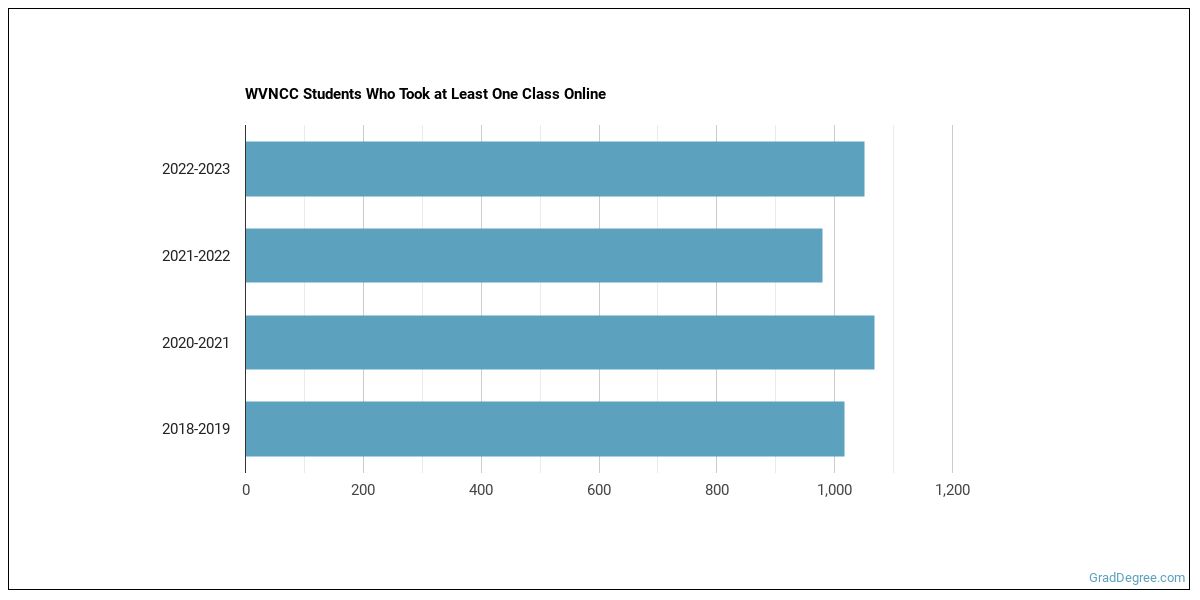 The following chart shows how the online learning population at WVNCC has changed over the last few years.