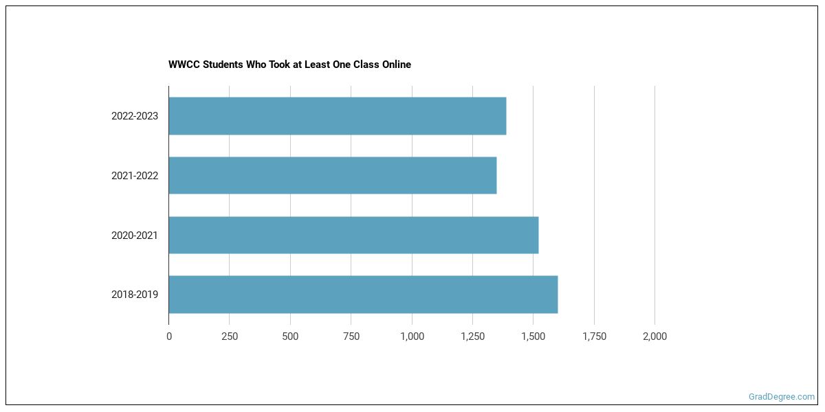 The following chart shows how the online learning population at WWCC has changed over the last few years.