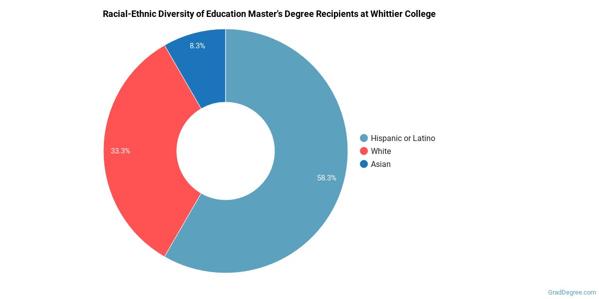 The following table and chart show the race/ethnicity for students who recently graduated from Whittier College with a master's in education.