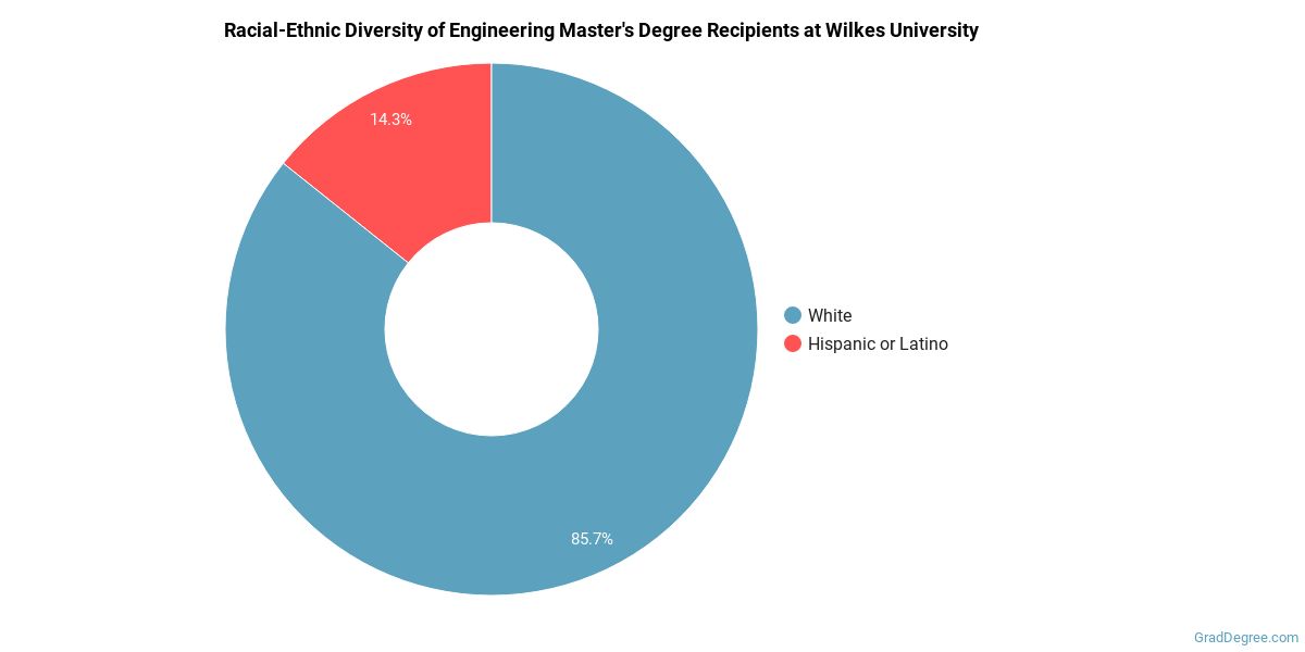 Of the students who received a engineering master's degree from Wilkes, 86% were white. This is above average for this degree on the natiowide level.