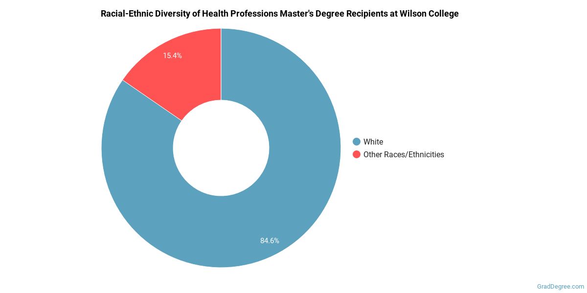 Of the students who received a health professions master's degree from Wilson, 85% were white. This is above average for this degree on the natiowide level.