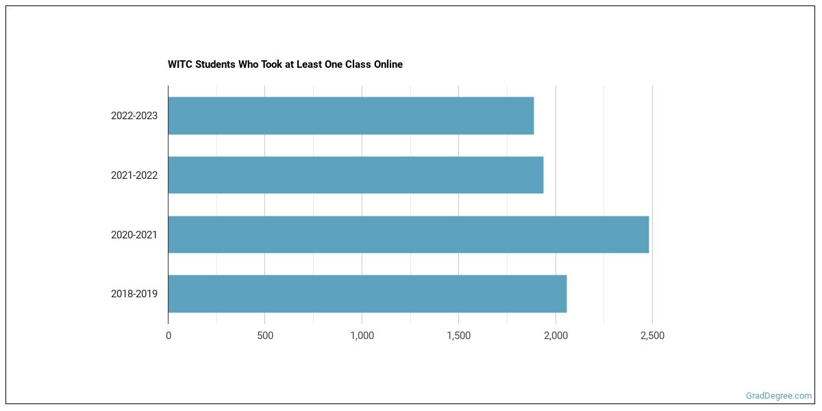 The following chart shows how the online learning population at WITC has changed over the last few years.