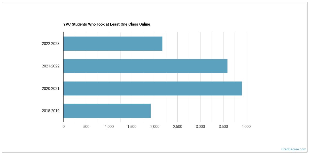 The following chart shows how the online learning population at YVC has changed over the last few years.