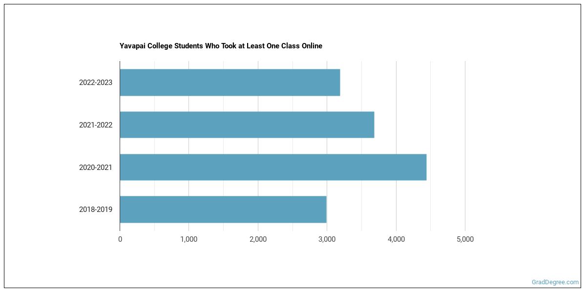 The following chart shows how the online learning population at Yavapai College has changed over the last few years.