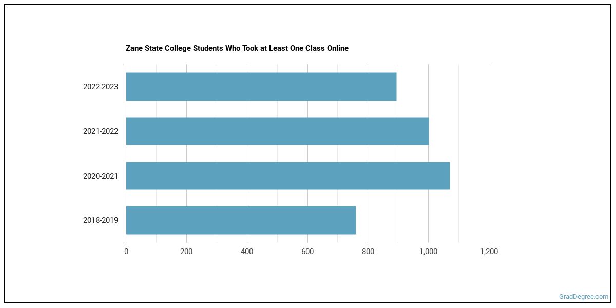 The following chart shows how the online learning population at Zane State College has changed over the last few years.