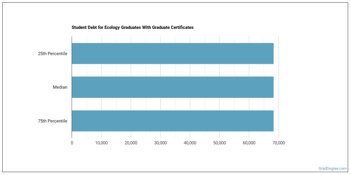 The median student debt for graduates holding a graduate certificate in ecology is $75,163. The school you go to and how long it takes you to graduate, among other things, can cause this number to vary. The chart below shows the range of accumulated debt loads. On the high side of the range, $81,082 is the debt load, and the debt load on the low side is $69,245.